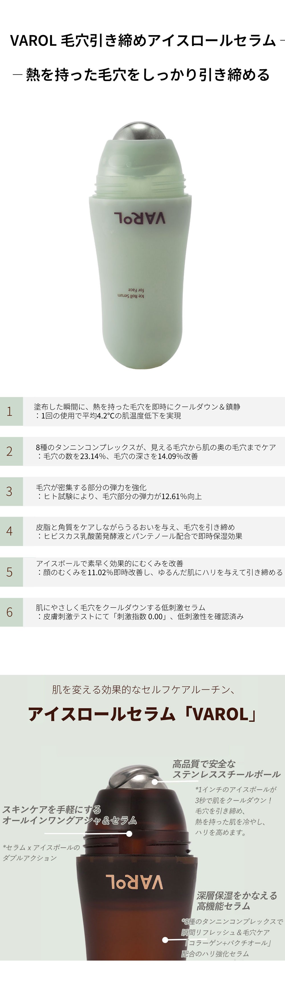 ●薄いグリーンのボディ【VAROL 毛穴引き締めアイスロールセラム】