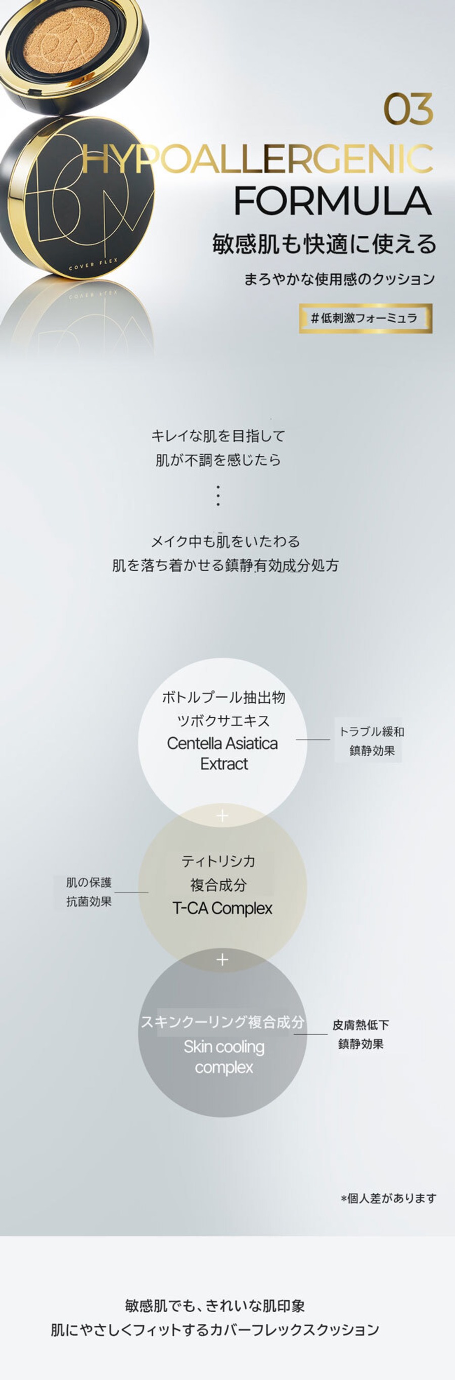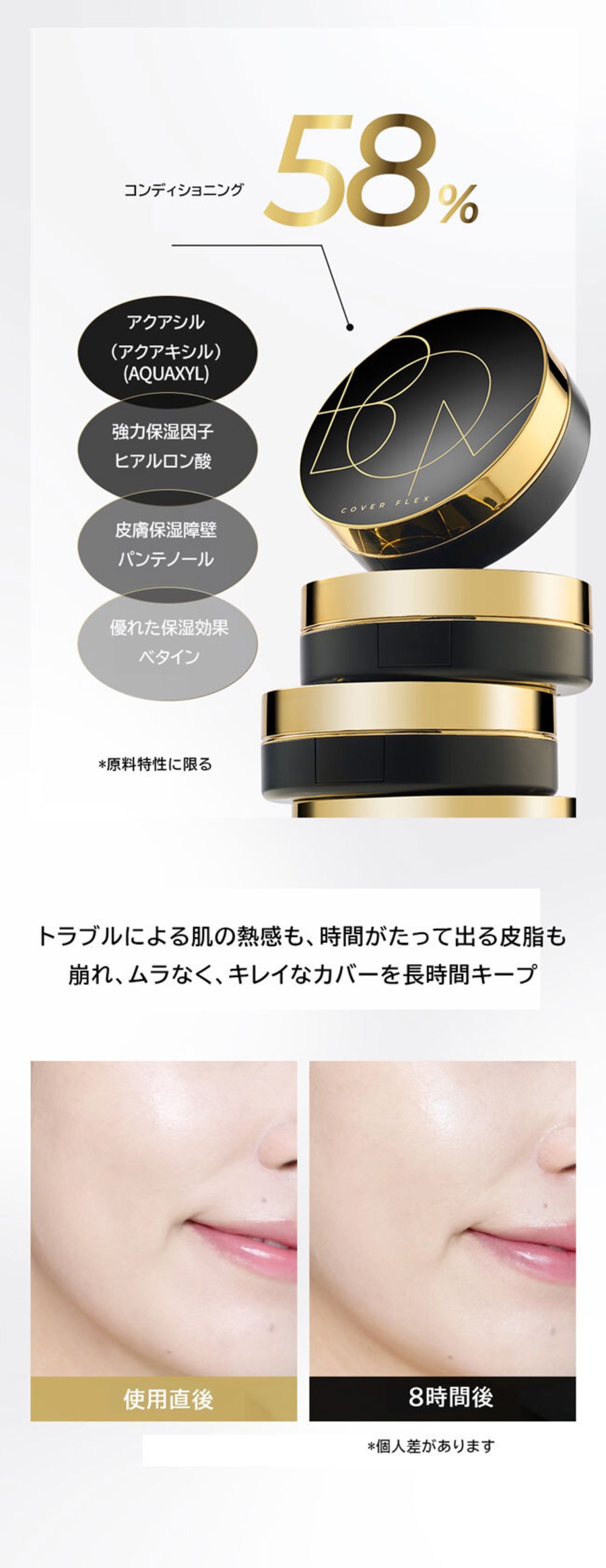スキンコンディショニング約58%配合、浮きやヨレを防ぎ、ムラなく一日中気になる部分をカバー<br>