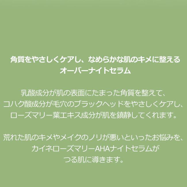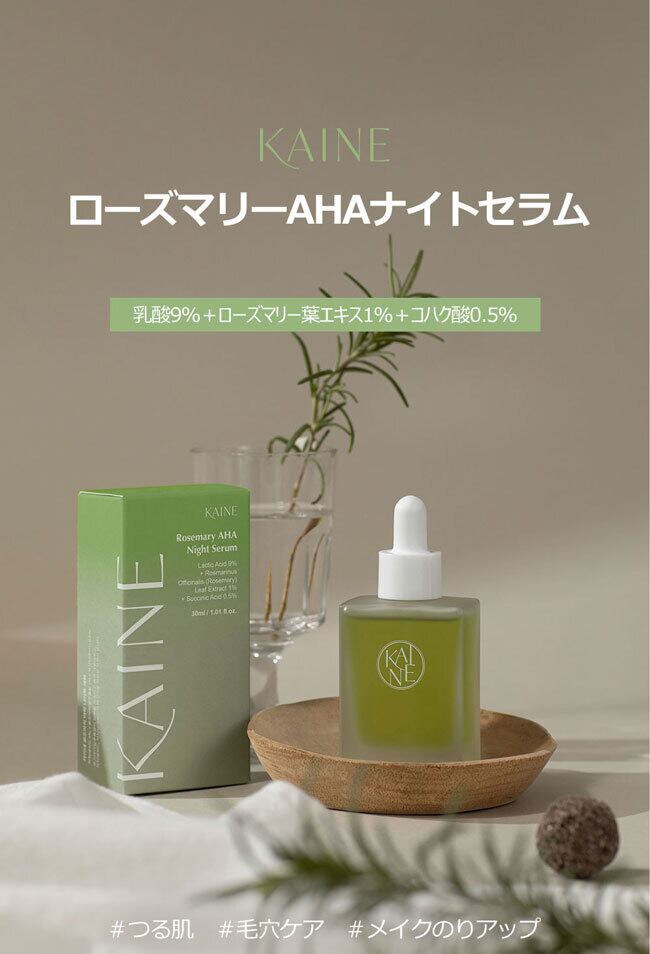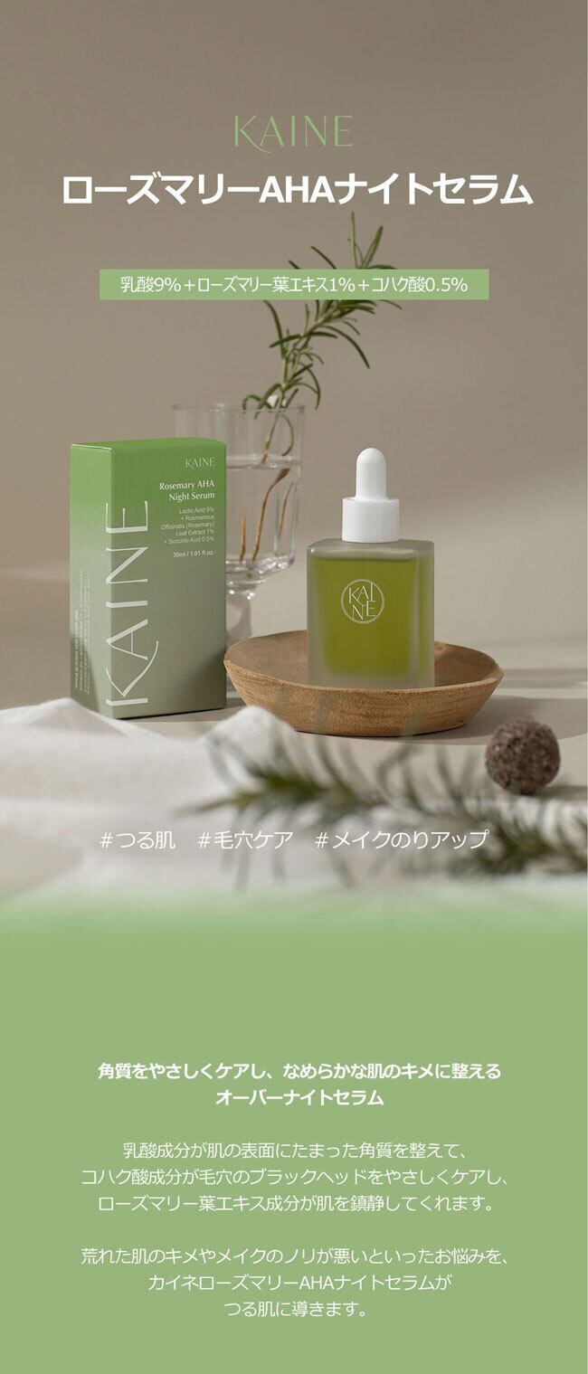 荒れた肌のキメやメイクのノリが悪いといったお悩みを、カイネローズマリーAHAナイトセラムがツル肌に導きます。